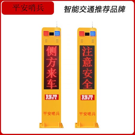 LED發(fā)顯示屏:紅綠雙色LED戶外顯示屏,平時(shí)不亮,當(dāng)有來(lái)車時(shí)顯示,警示注意側(cè)方來(lái)車,減速慢行。